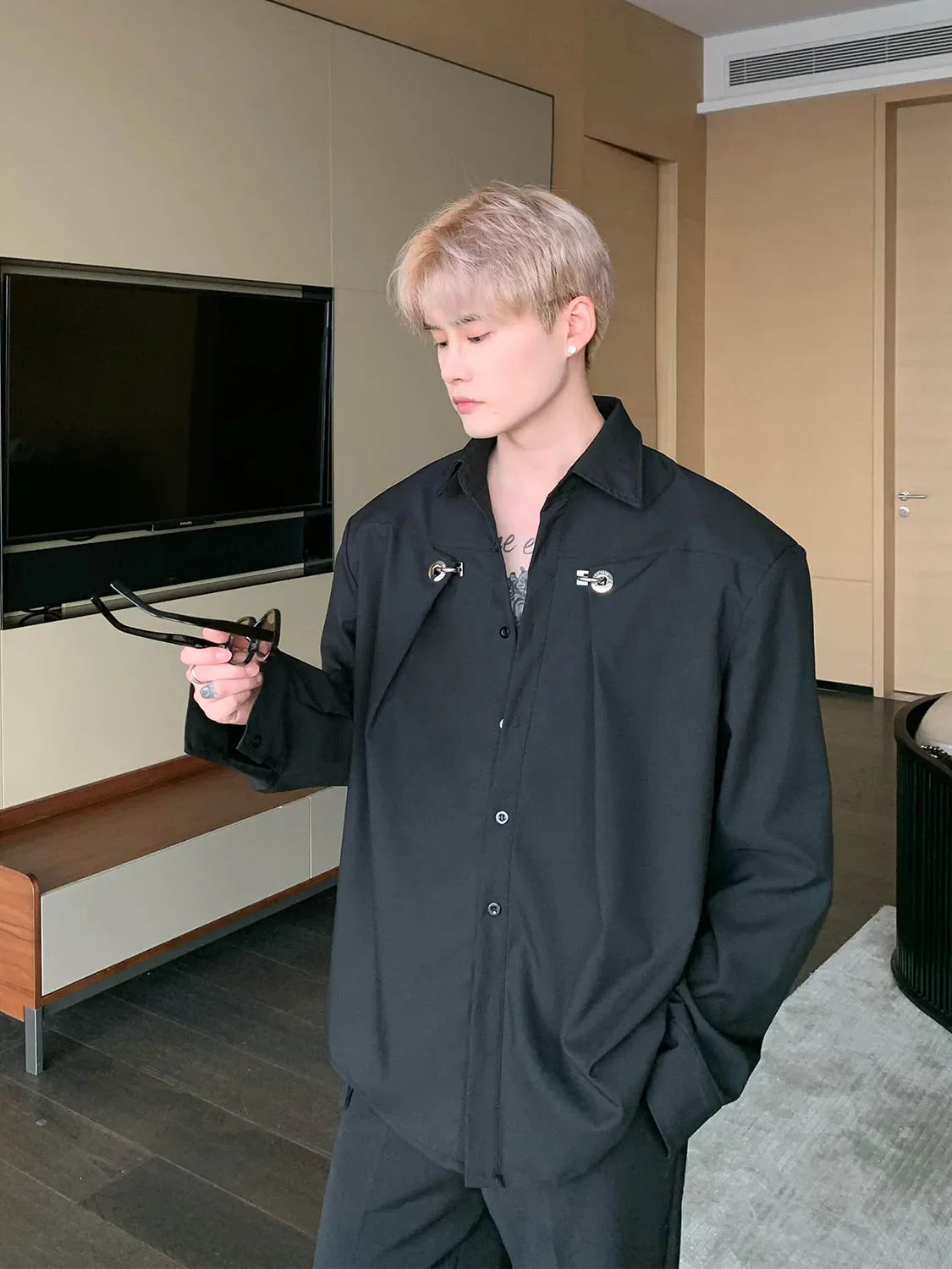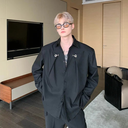 saferido Spring Autumn Fashion Korean Spring Long Sleeve Men Shirt Loose Casual Black White Solid Color Turn-down Collar Simple