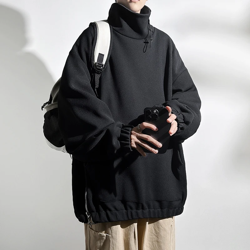 saferido Spring Autumn Hoodies Men Fashon Turtleneck Pullover Sweatshirt Mens Solid Color Loose Streetwear Hip Hop Couple Casual Hoodies