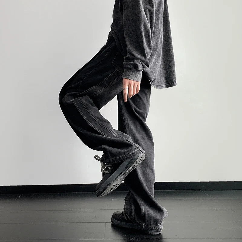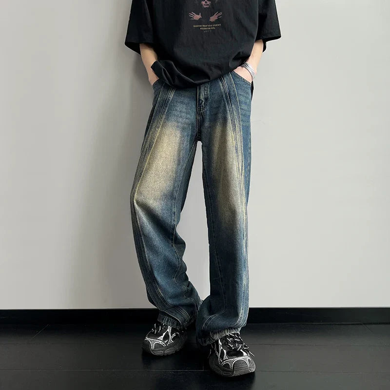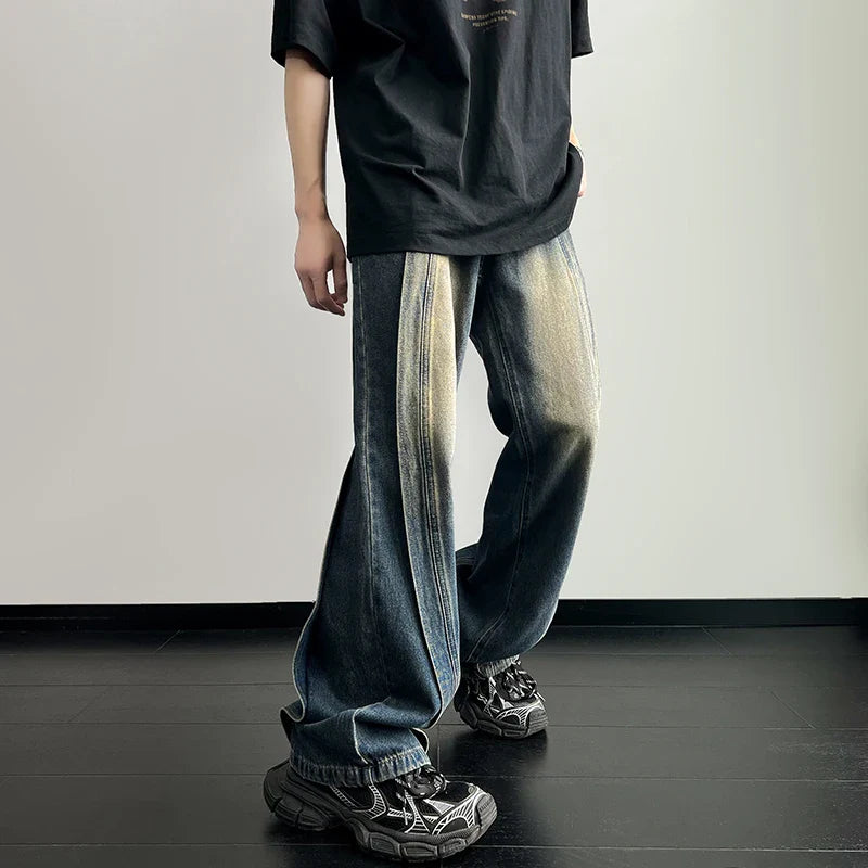 saferido Spring Autumn Men Korean Vintage Fashion Jeans Streetwear Hip Hop Baggy Denim Trousers Straight Wide Leg Mopping Pants