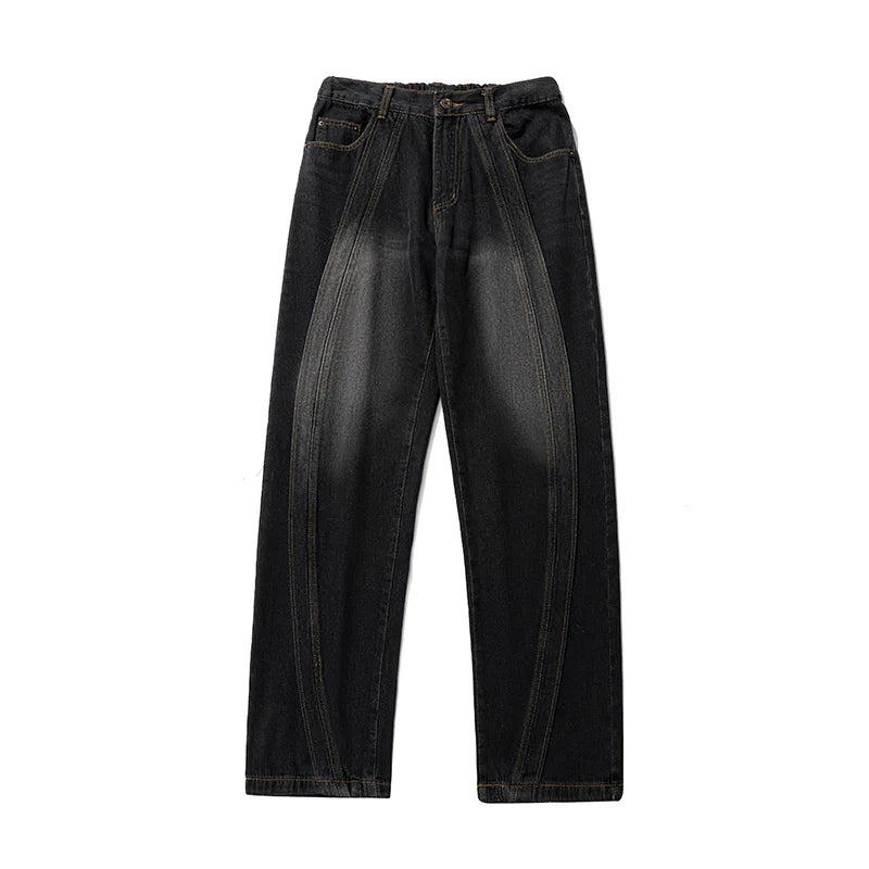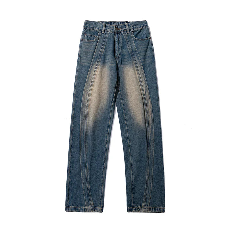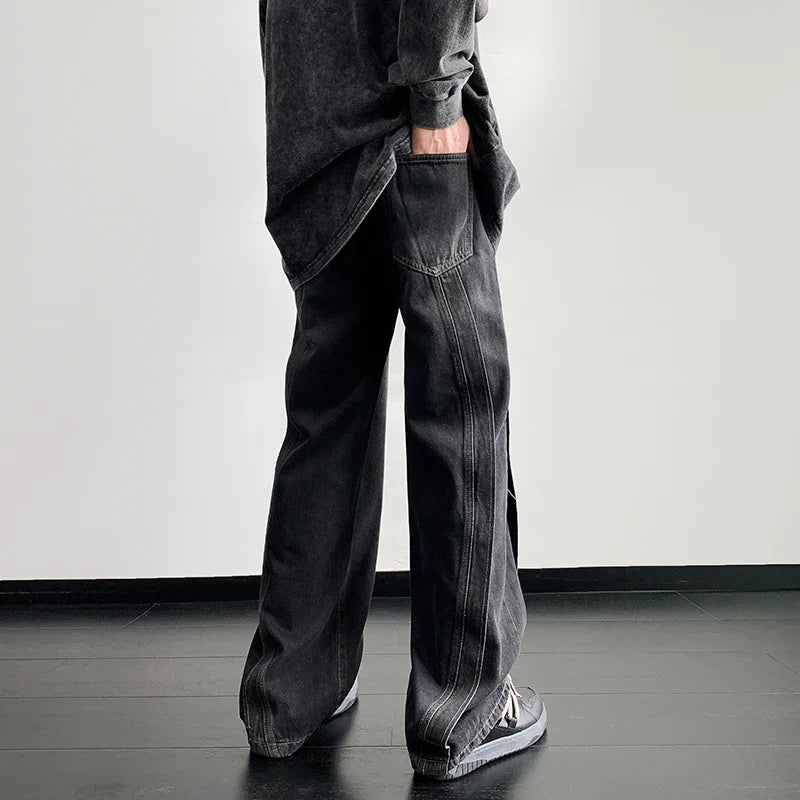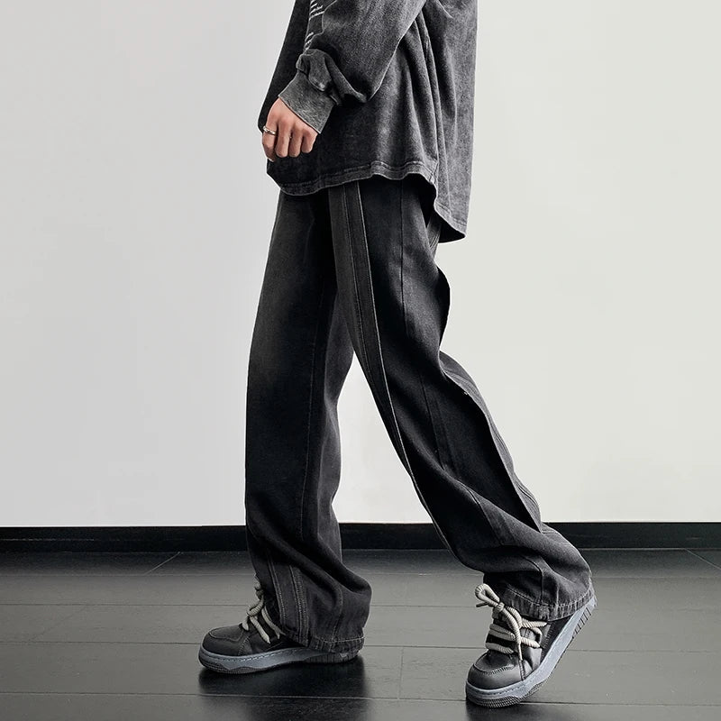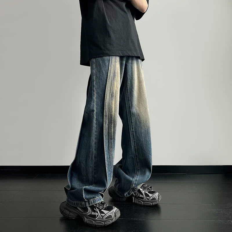 Threebooy Spring Autumn Men Korean Vintage Fashion Jeans Streetwear Hip Hop Baggy Denim Trousers Straight Wide Leg Mopping Pants