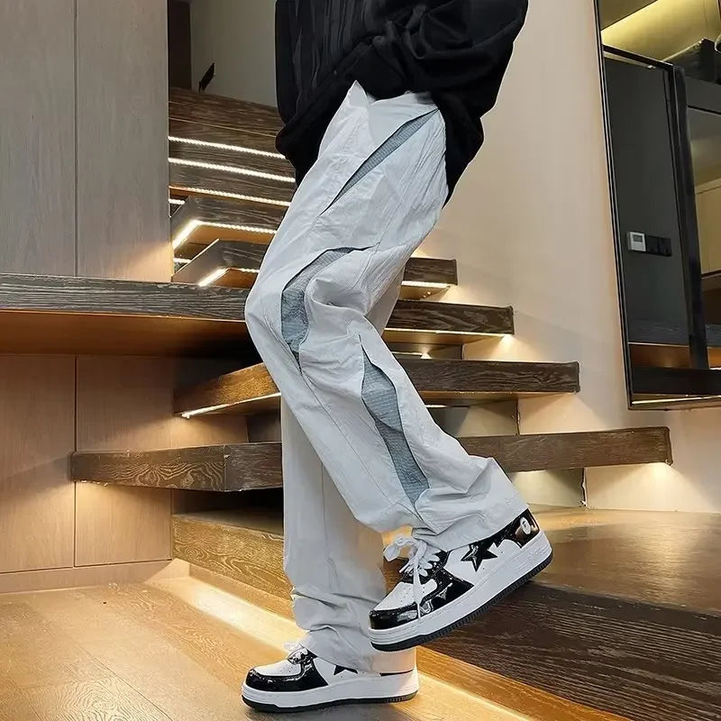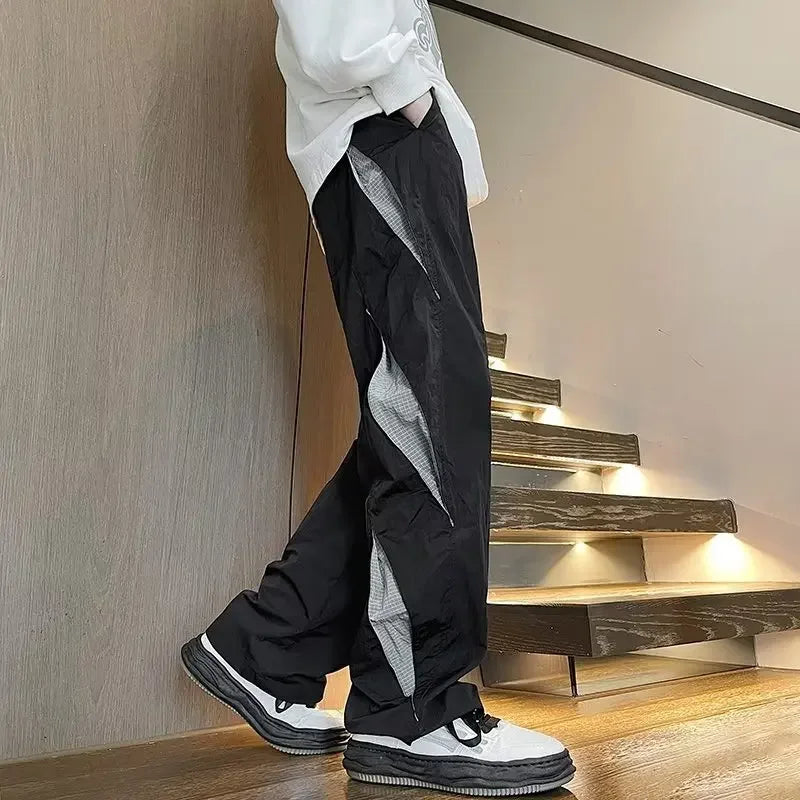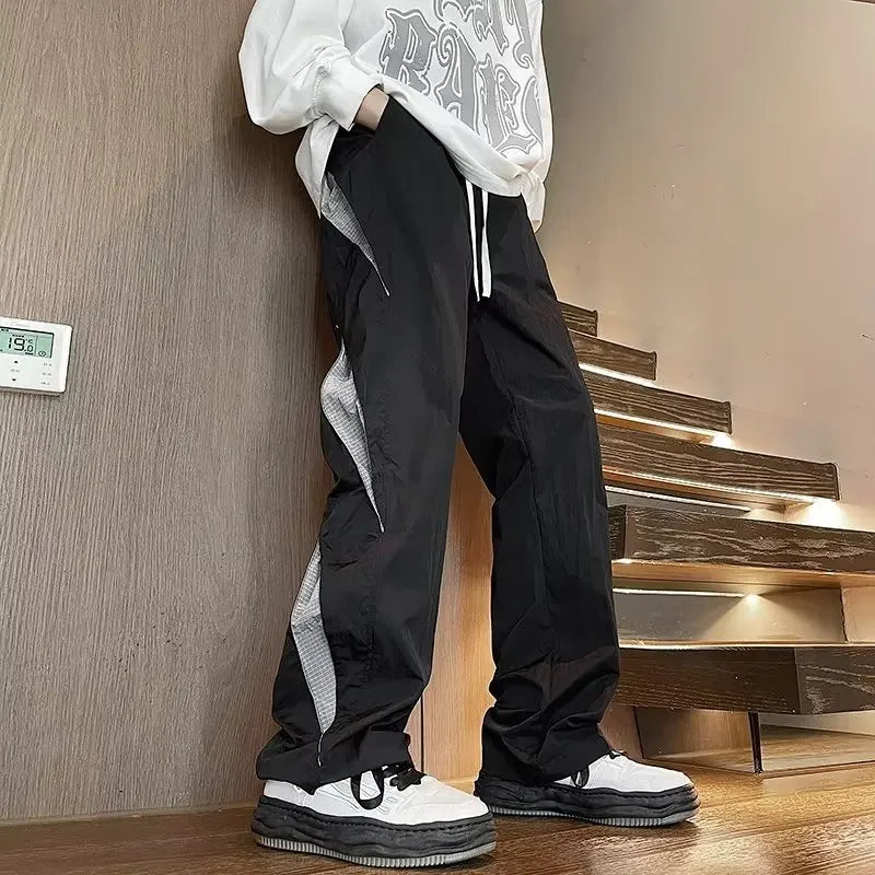 saferido Spring Autumn Men's American Style Loose-fit Striped Straight-leg Casual Pants Wide-leg Long Pants Draped Design