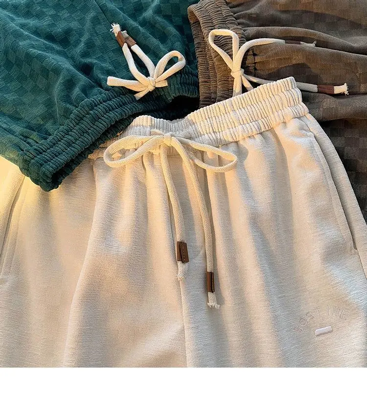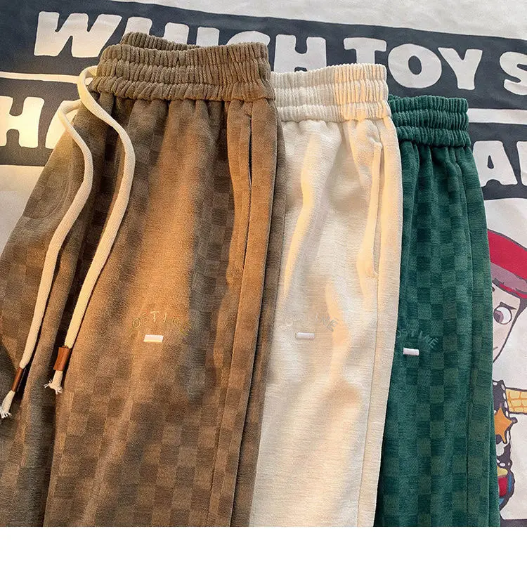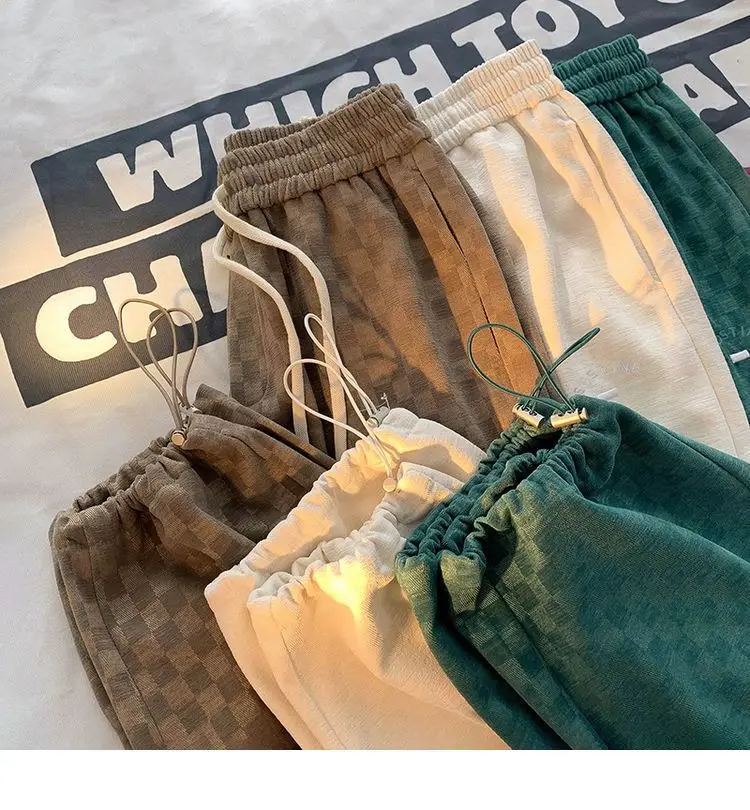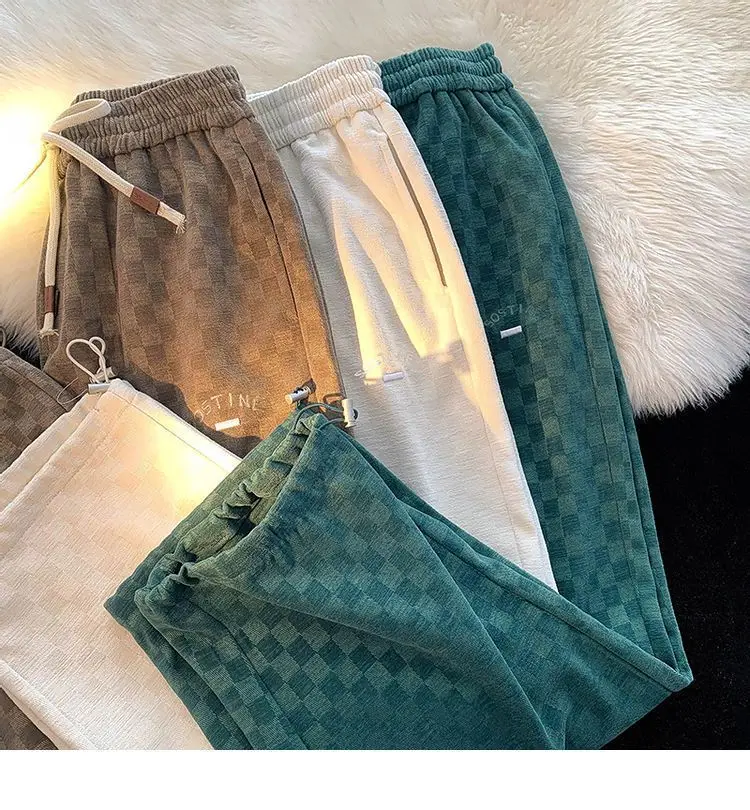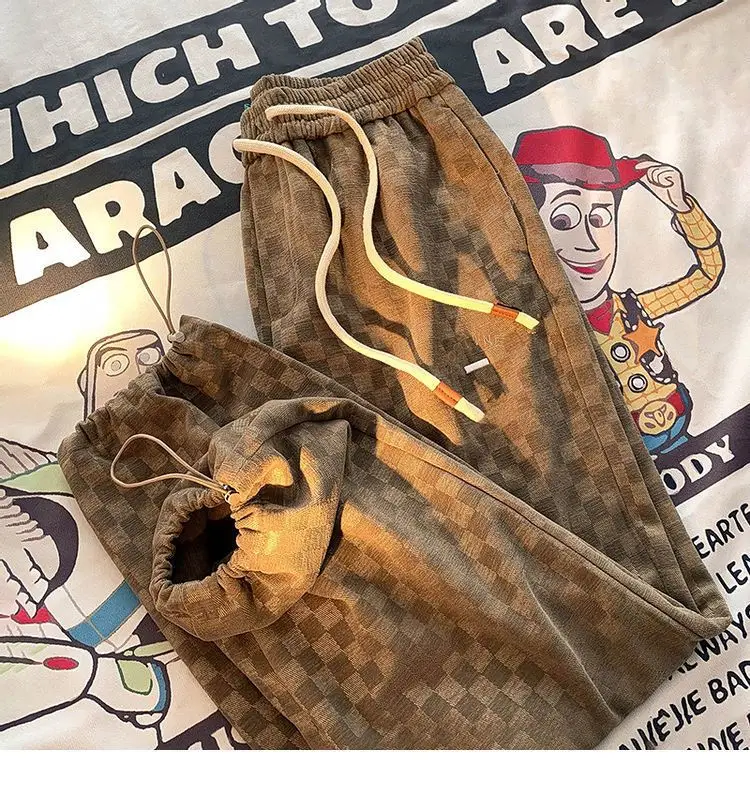 saferido Spring Autumn Plaid Printing Straight Pants Man Street Loose Casual Wide Leg Trousers Korean Style Motion Men's Clothing
