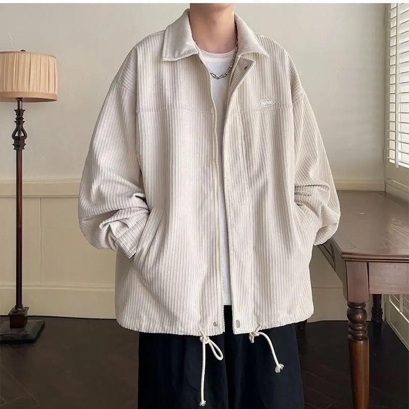 saferido Spring Fashion Men's Casual T-Shirt Loose Soft Versatile Tops Zipper Corduroy Jacket Coat Cool Boys Solid Printi Drawstring