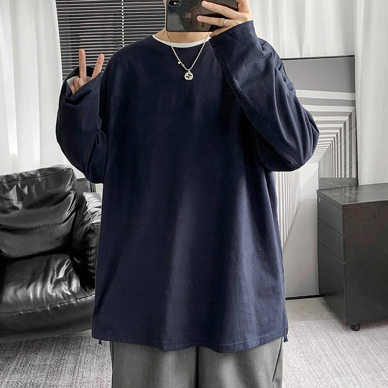 saferido Spring Multicolor Cotton T-shirt Men Fashion Solid Color Casual O-neck T Shirt Men Korean Loose Long-sleeved T-shirt Mens Tops