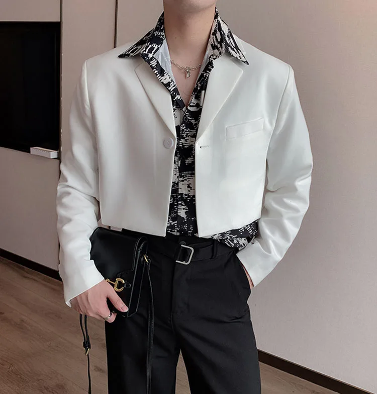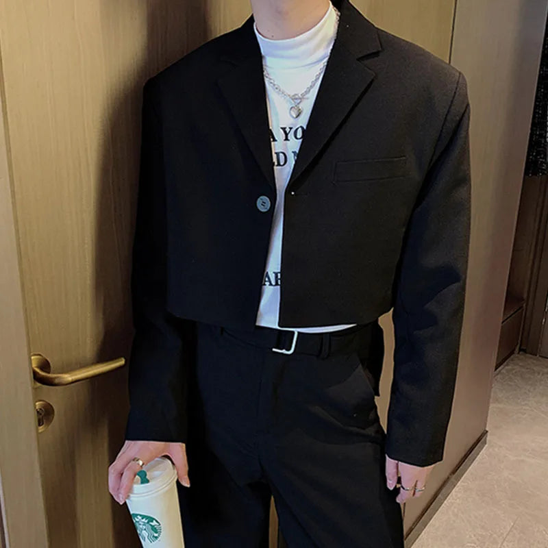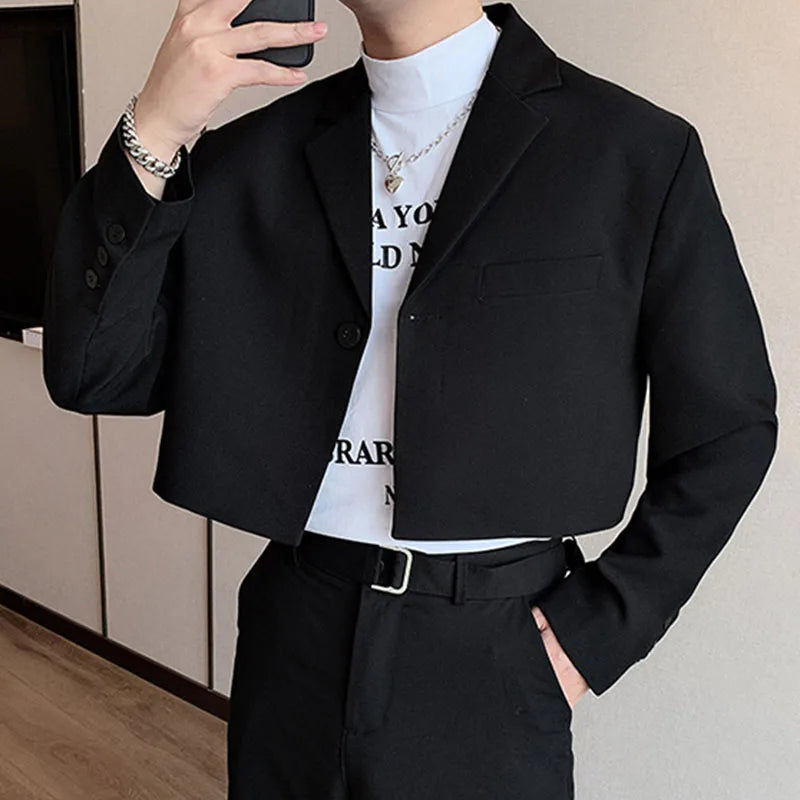 Threebooy Spring New Korean Version Of The Casual Short Street Style Solid Color Lapel Suit Jacket Men's Trend Design Suit