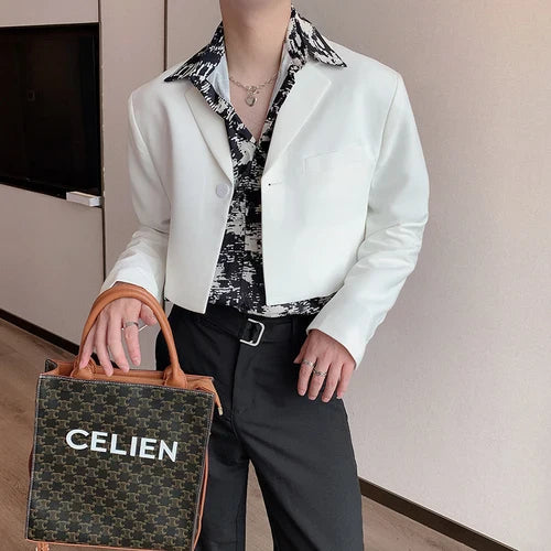 saferido Spring New Korean Version Of The Casual Short Street Style Solid Color Lapel Suit Jacket Men's Trend Design Suit