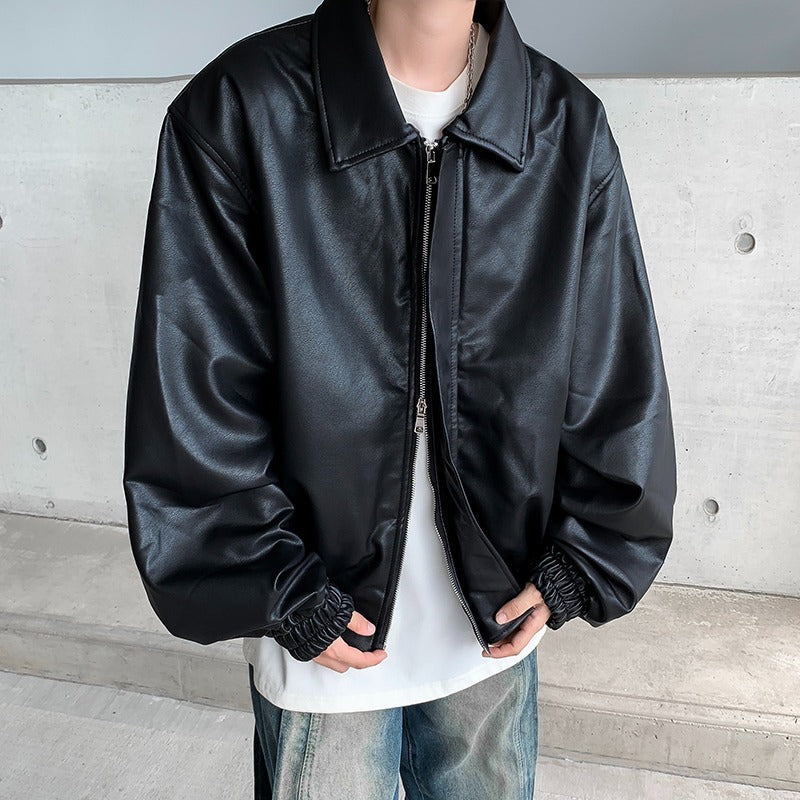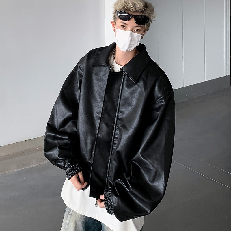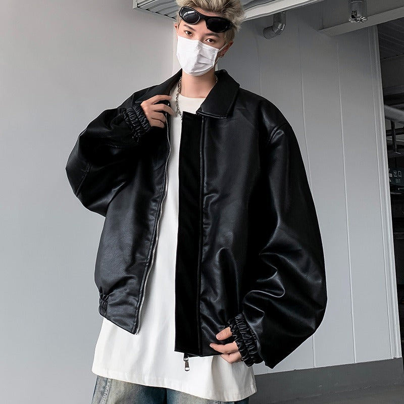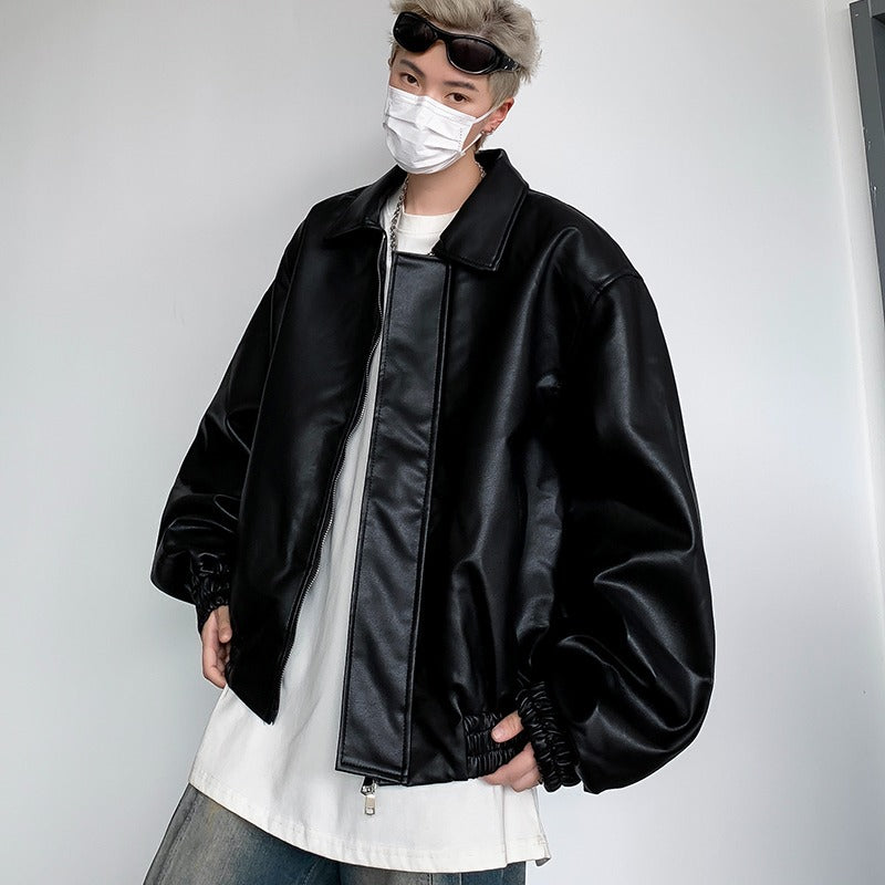 starboy outfit American Retro Cleanfit Short Shoulder Pad Leather Jacket Men's Spring and Autumn Casual Loose Leather Jacket