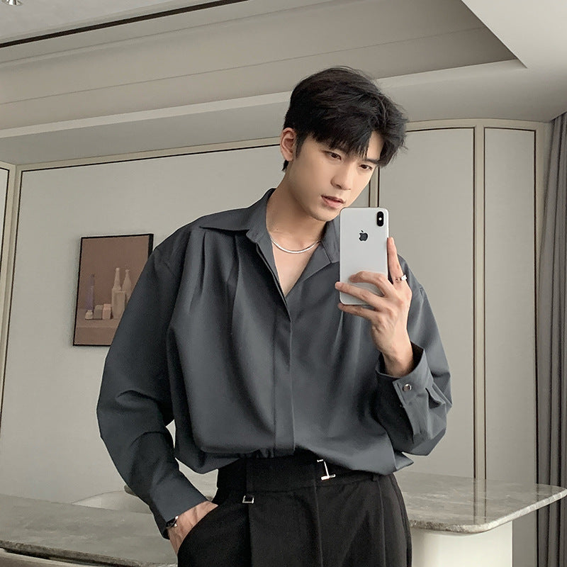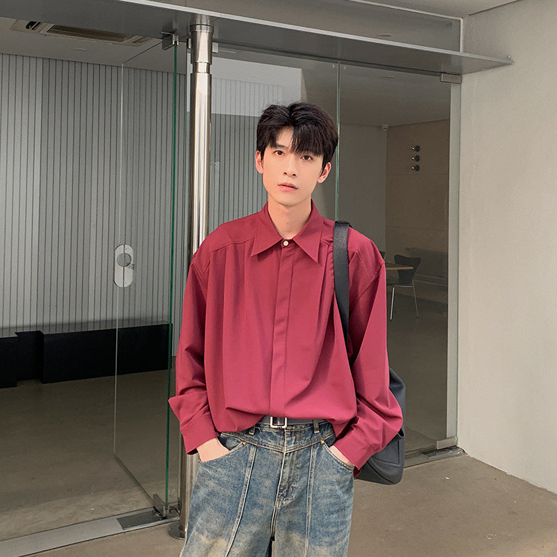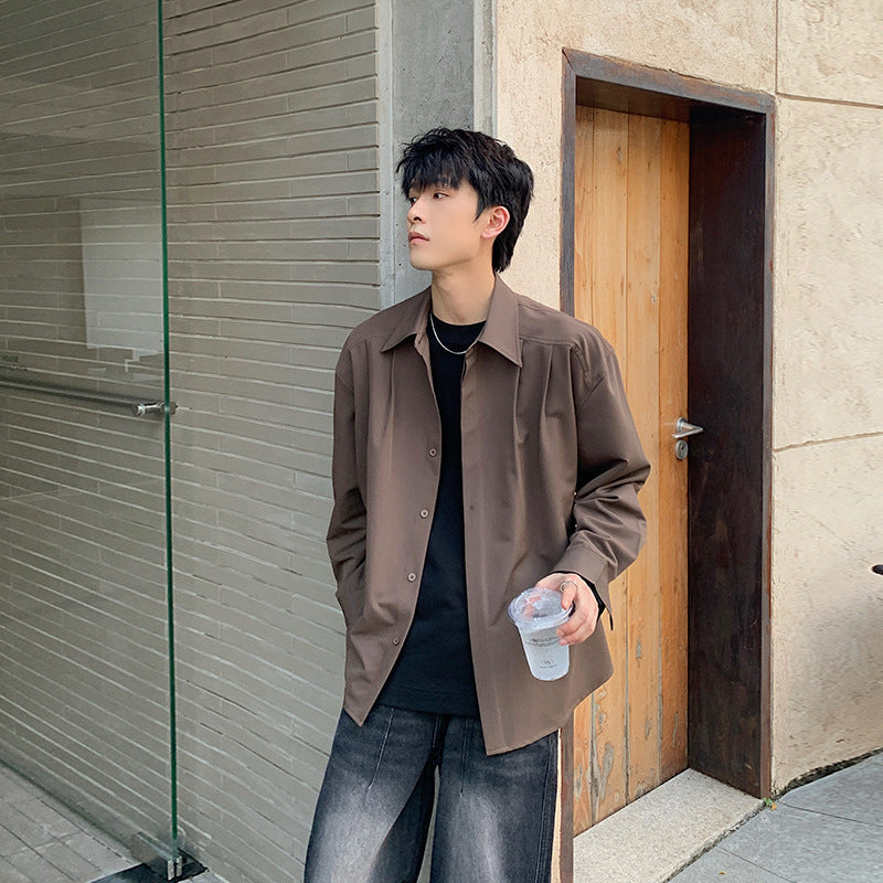 starboy outfit Spring and Autumn Pure Color Ruan Handsome Shirt Lazy Style Men's Long Sleeve Loose Casual Light Mature Style Korean Style Niche Shirt Jacket