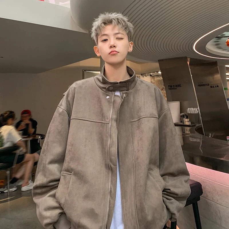 Threebooy Suede jacket men's spring and autumn new design sense top American trendy brand loose casual jacket military jackets