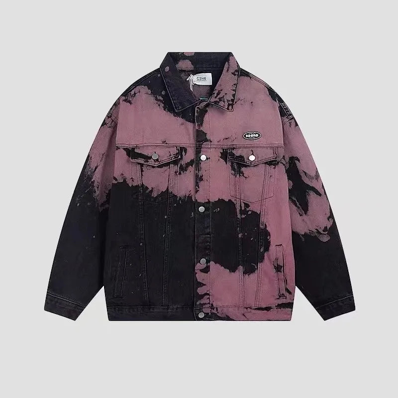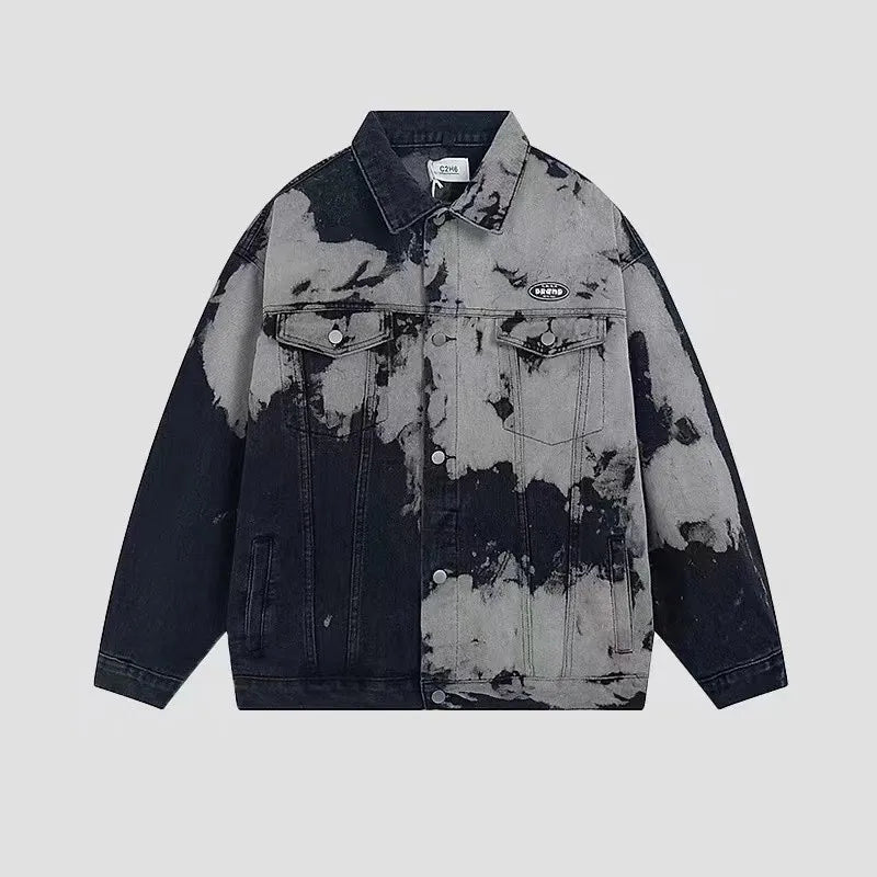 Threebooy Tie Dyed Jacket Men's Spring Autumn Men's Clothing Jacket Hip Hop Harajuku Street Clothing Fashion Trendy Denim Jacket