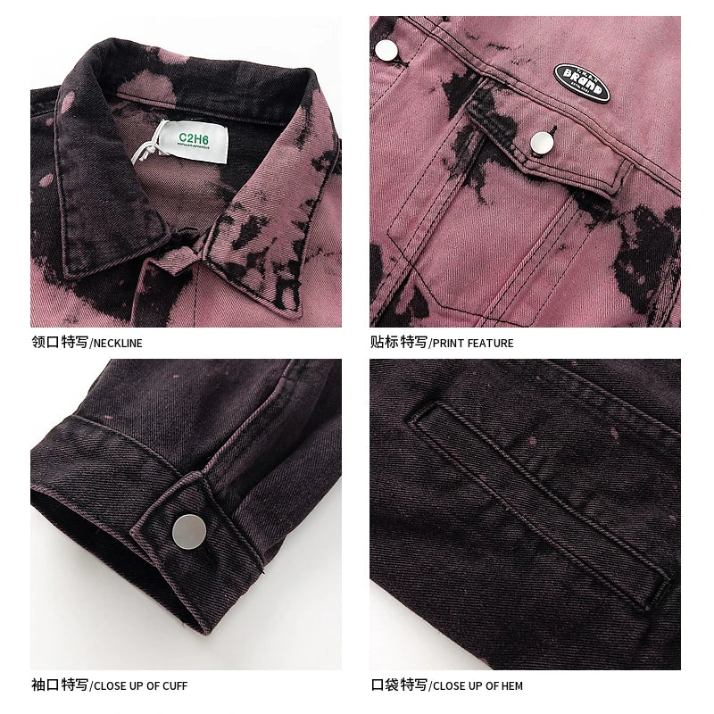 saferido Tie Dyed Jacket Men's Spring Autumn Men's Clothing Jacket Hip Hop Harajuku Street Clothing Fashion Trendy Denim Jacket