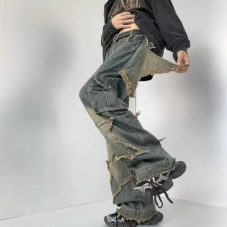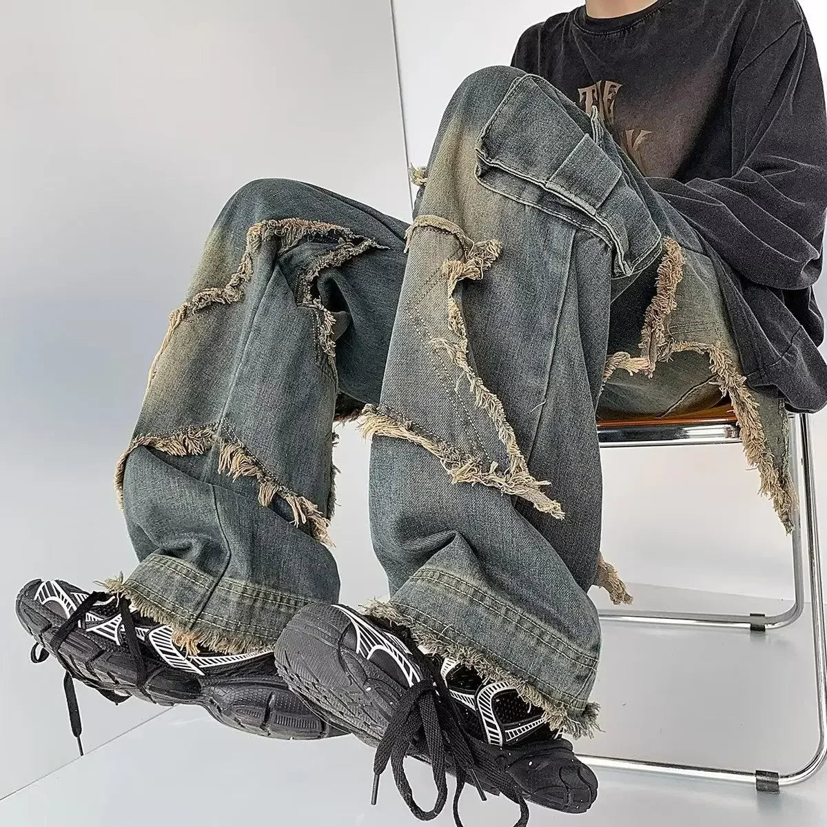 • Fried Street Hip-hop Look :With their fried street hip-hop look, these jeans add a touch of urban grit to your wardrobe, perfect for those who love to express their unique style.