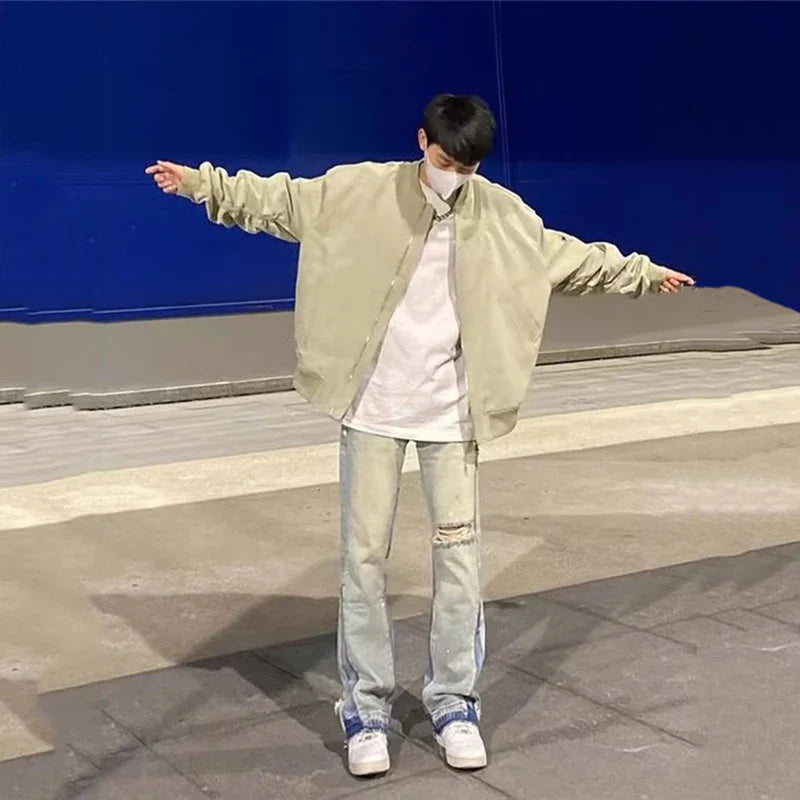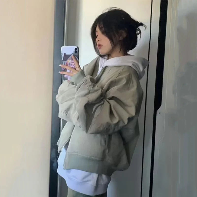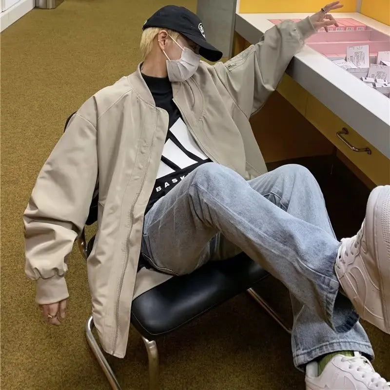 Threebooy Vintage Baseball Jacket For Men High Street Bomber Jacket Spring Autumn Solid Fashion Man Woman Jackets Biker Coat Outwear Tops