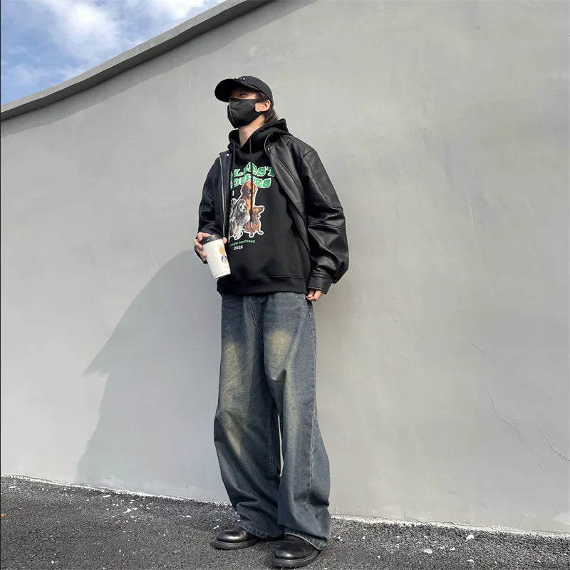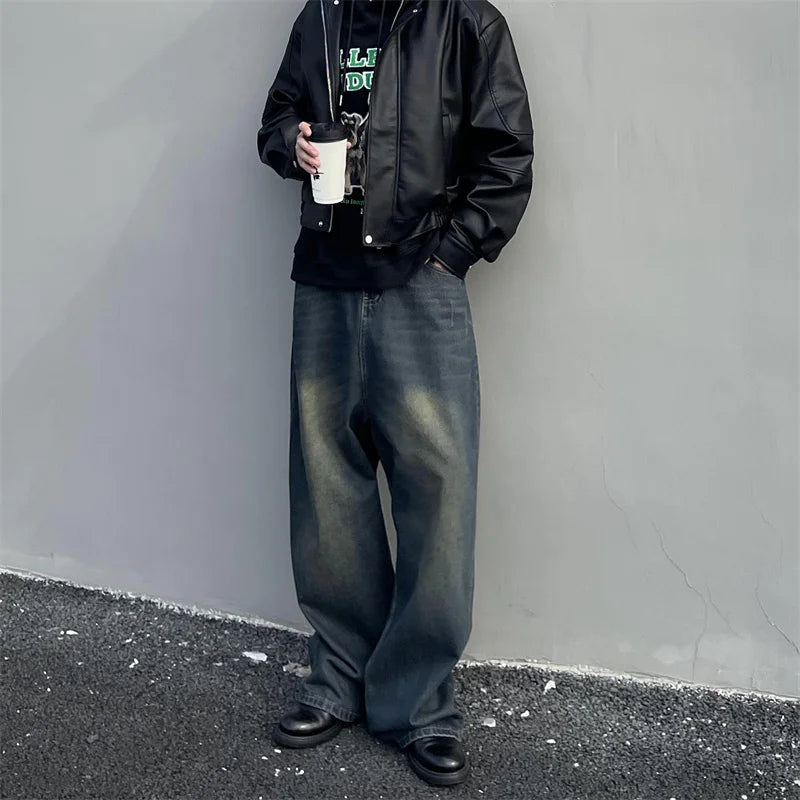 saferido Vintage Men's Jeans Spring New Distressed Denim Straight Loose Pants High Street Male Casual Simple Daily Wide Leg Trousers