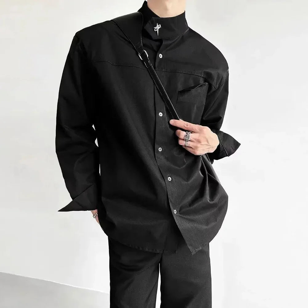 Threebooy Y2K Mens Shirt Pocket Retro Button Padded Shoulder Long Sleeved Shirt Spring Casual Simple Anti-Static Top Men's Clothing Unisex