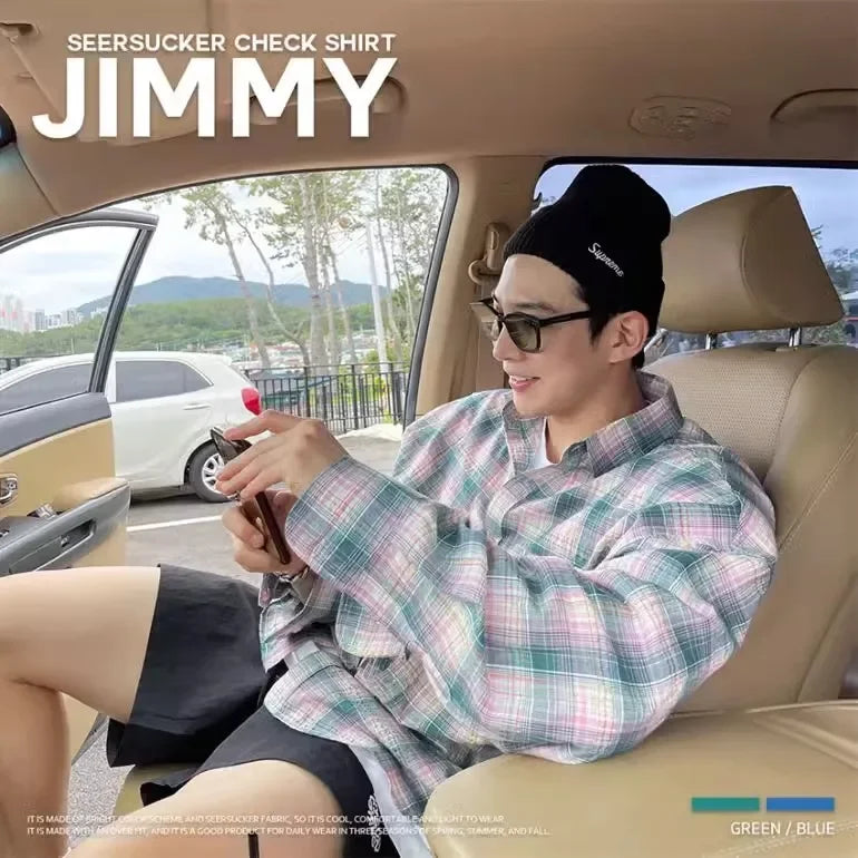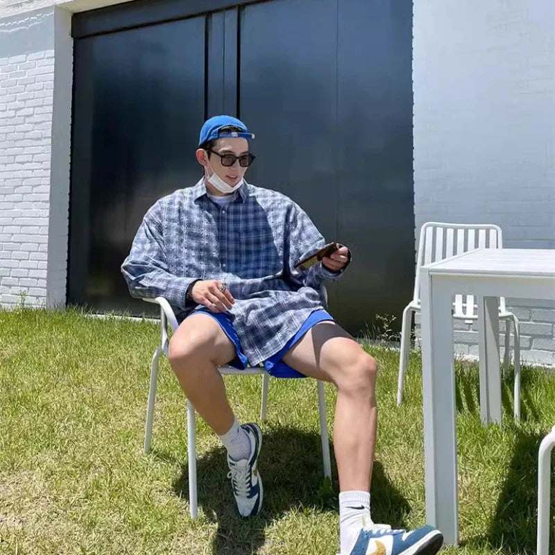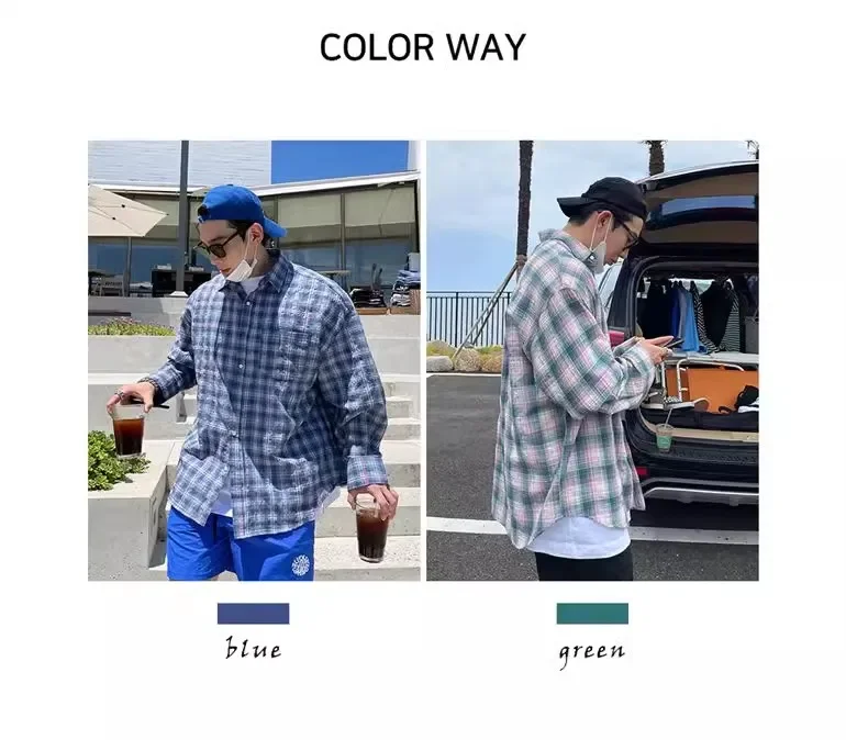 Unisex Oversized Retro Plaid Shirt Coat Men's Long Sleeve Casual Loose Fit Fashion Japanese Korean Style Sun Protection Clothing