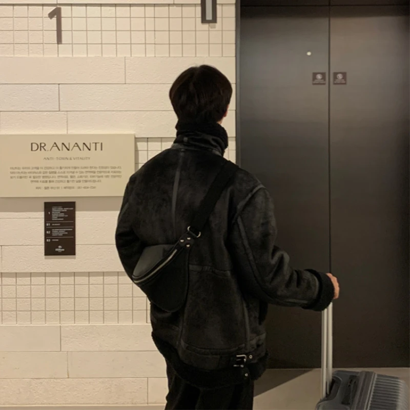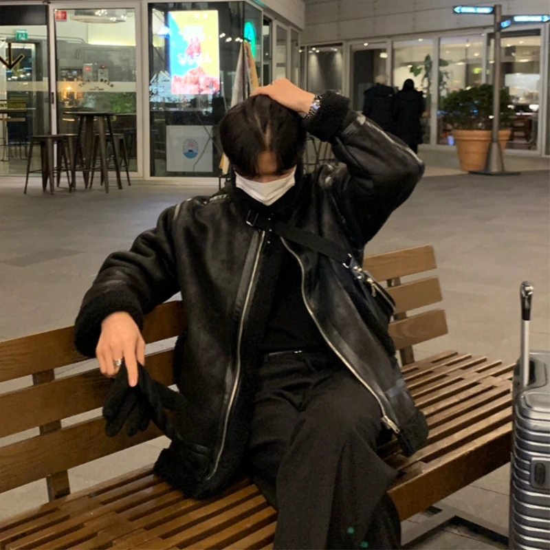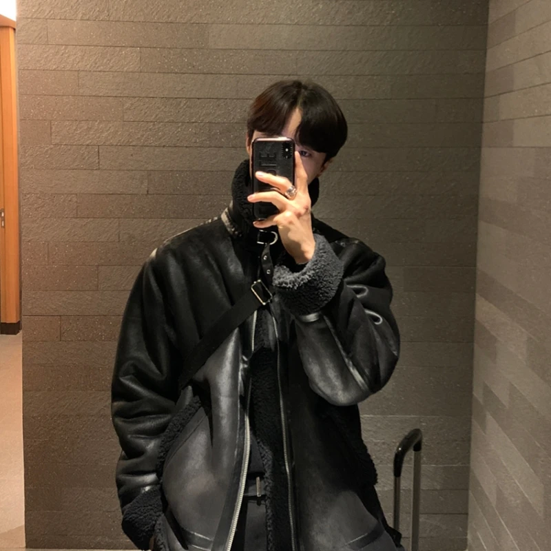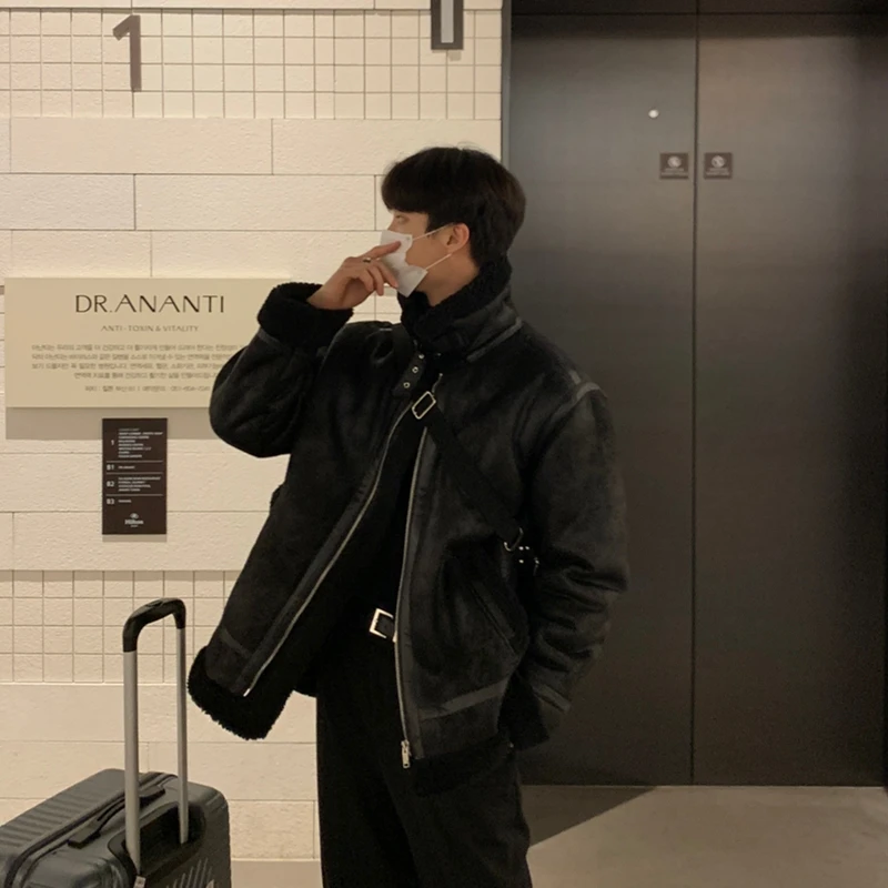 Winter Jacket Men Warm Fashion Black Thickened Lamb Wool Jacket Men Streetwear Korean Loose Short Coat Mens Thick Suede Jackets