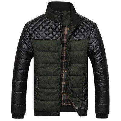 Winter Men Parka Fashion Mens Cotton Thick Jackets Parkas Male Casual PU Patchwork Design Outerwear Coats Clothing YA745