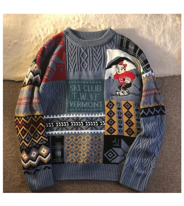 Winter Men Turtleneck Sweaters Christmas Ski Bear Knitted Pullovers Casual Sweaters Male Knitwear Hip Hop Pullovers