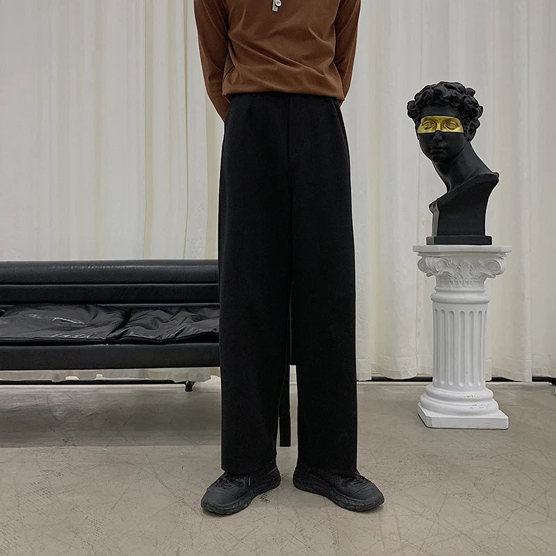 Winter Thick Woolen Pants Men Warm Fashion Cotton Black/Brown Suit Pants Men Loose Straight Pants Mens Casual Trousers S-2XL
