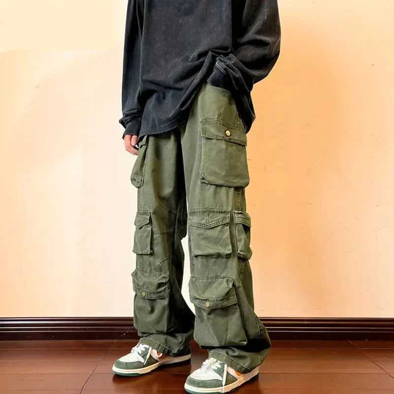 Y2k Men's Cargo Pants Multi Pocket Male Hiphop Overalls High Street Safari Style Trousers Summer New Streetwear